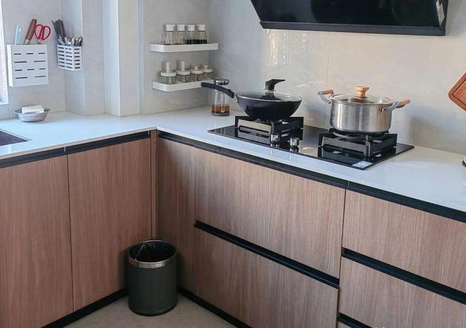 建议方案:可以选择下挂垃圾桶,比如挂在水槽旁边;或者是推拉式垃圾桶,类似于小推车,使用时推过来,不用时推走即可。如果橱柜能空出一格来放置垃圾桶,那将是更好的选择。